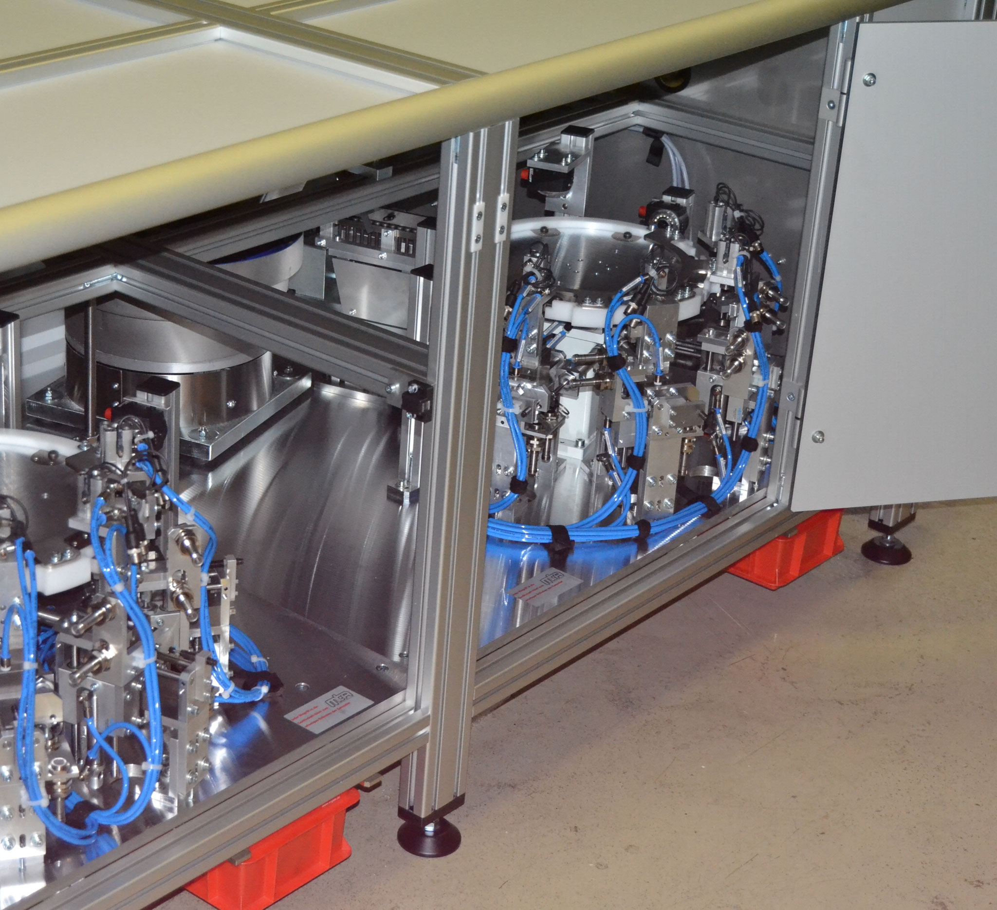 Sortiertöpfe, bestehend aus Rundantrieb und Aufsatz werden immer Individuell auf das Sortierspektrum angepasst. Je nach Ausbringung und Autonomie sowie Eigenschaften vom Sortiergut kommen Zylinder-, Kegel- oder Stufenform zum Einsatz. Materialien wie V2A oder V4A sowie Sortieraufsätze aus POM sind unser lieferbarer Standard. Beschichtungen der Aufsätze tragen zur Teileschonung oder Lärmreduktion bei.